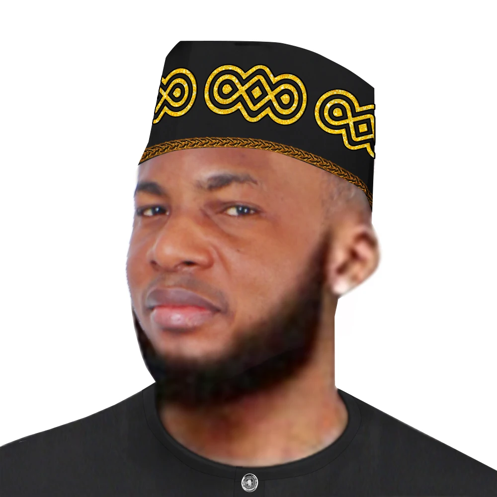 100% Cotton Solid Color Gold and silver Embroidered Caps African Kufi Hats Men's African Inspired Fashions Ankara Cap WYB870