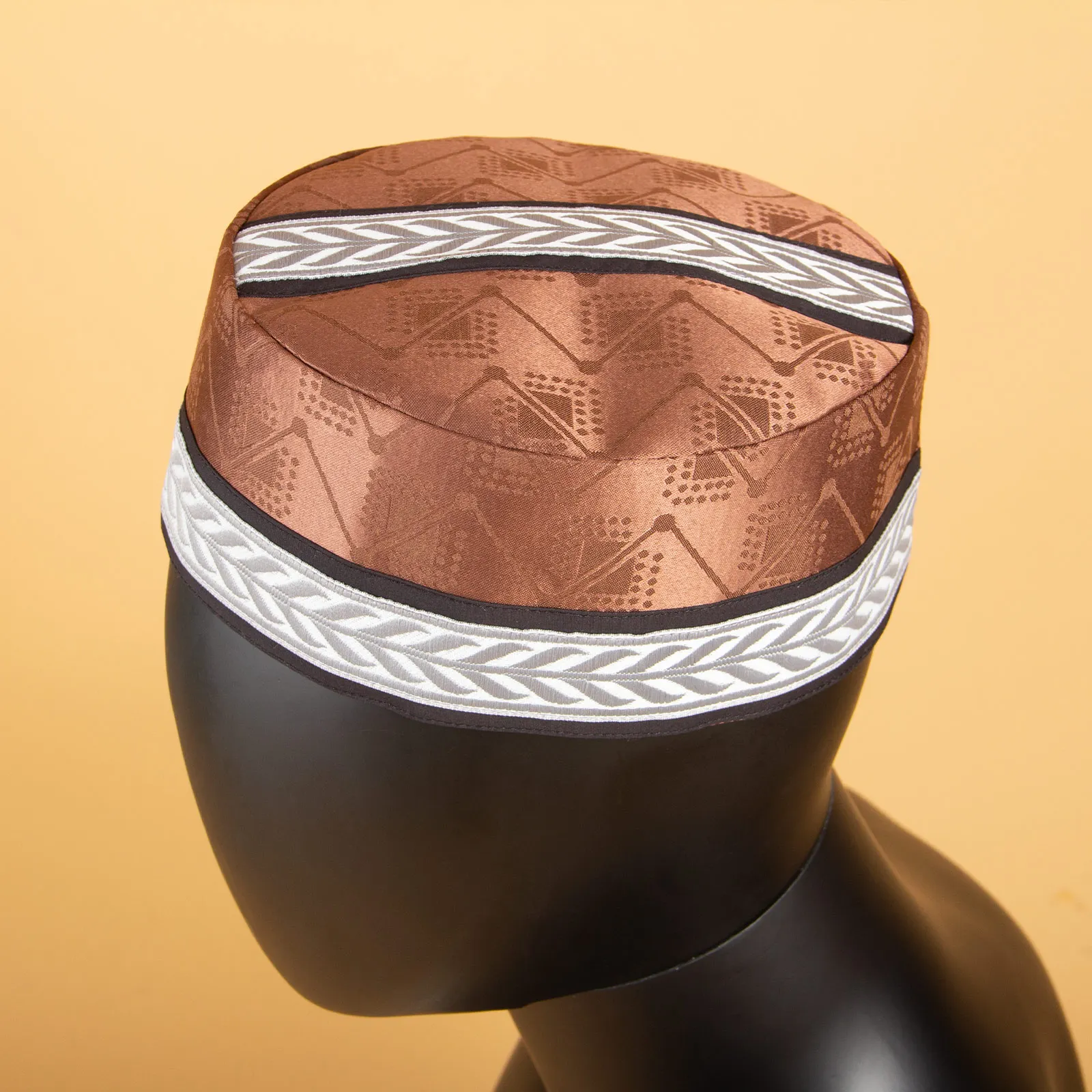 Turbam|Embrace cultural tradition with this Jacquard Striped Men’s Prayer Cap, perfect for African and Muslim attire. Customizable to fit head circumferences 56cm~58cm, this cap is crafted from durable polyester.